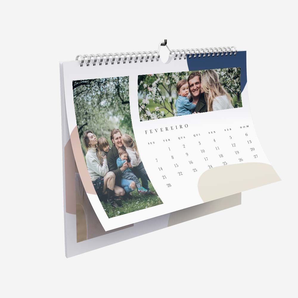 As fotografias do Calendário de Parede são reveladas em papel couché de alta qualidade. Este tipo de impressão irá proporcionar uma imagem nítida com cores vivas e intensas, o que confere ao teu calendário uma maior consistência e uma durabilidade superior.