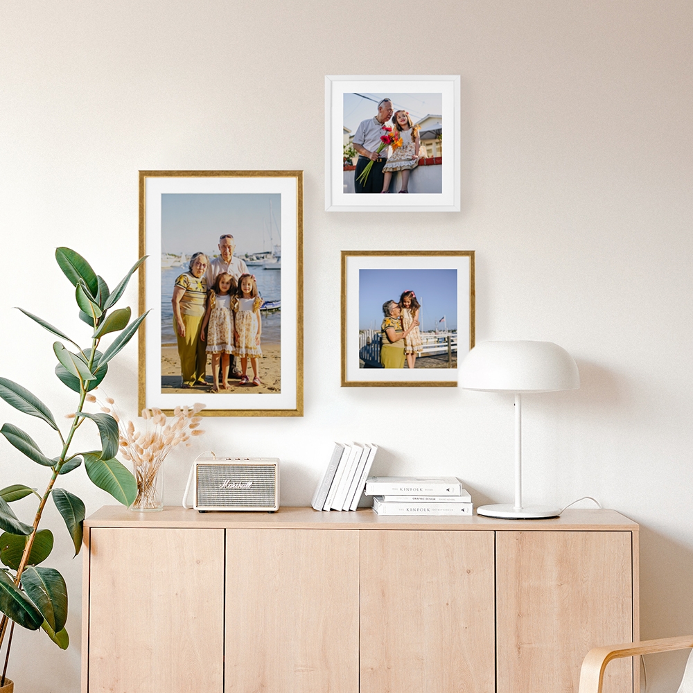 As molduras até 15x20 cm incluem suporte para colocação em mesa. A partir de 20x30 cm, são projetadas para serem penduradas na parede, tornando-se o destaque perfeito para qualquer ambiente.